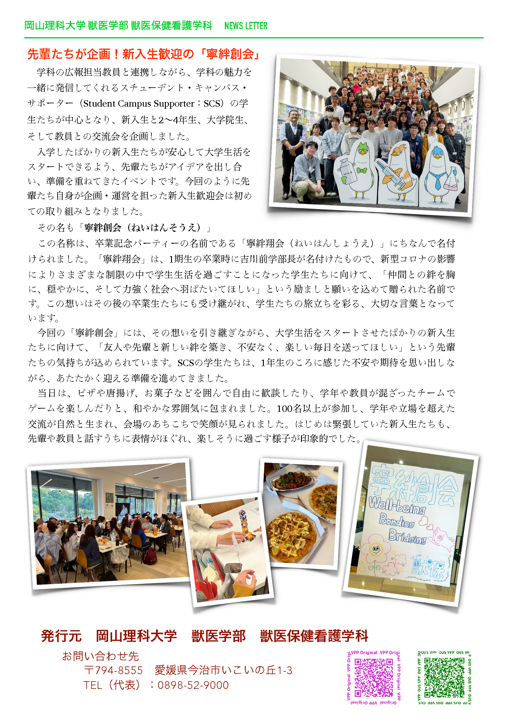 獣医保健看護学科の先輩たちが企画した新入生歓迎会を紹介します!(2面)